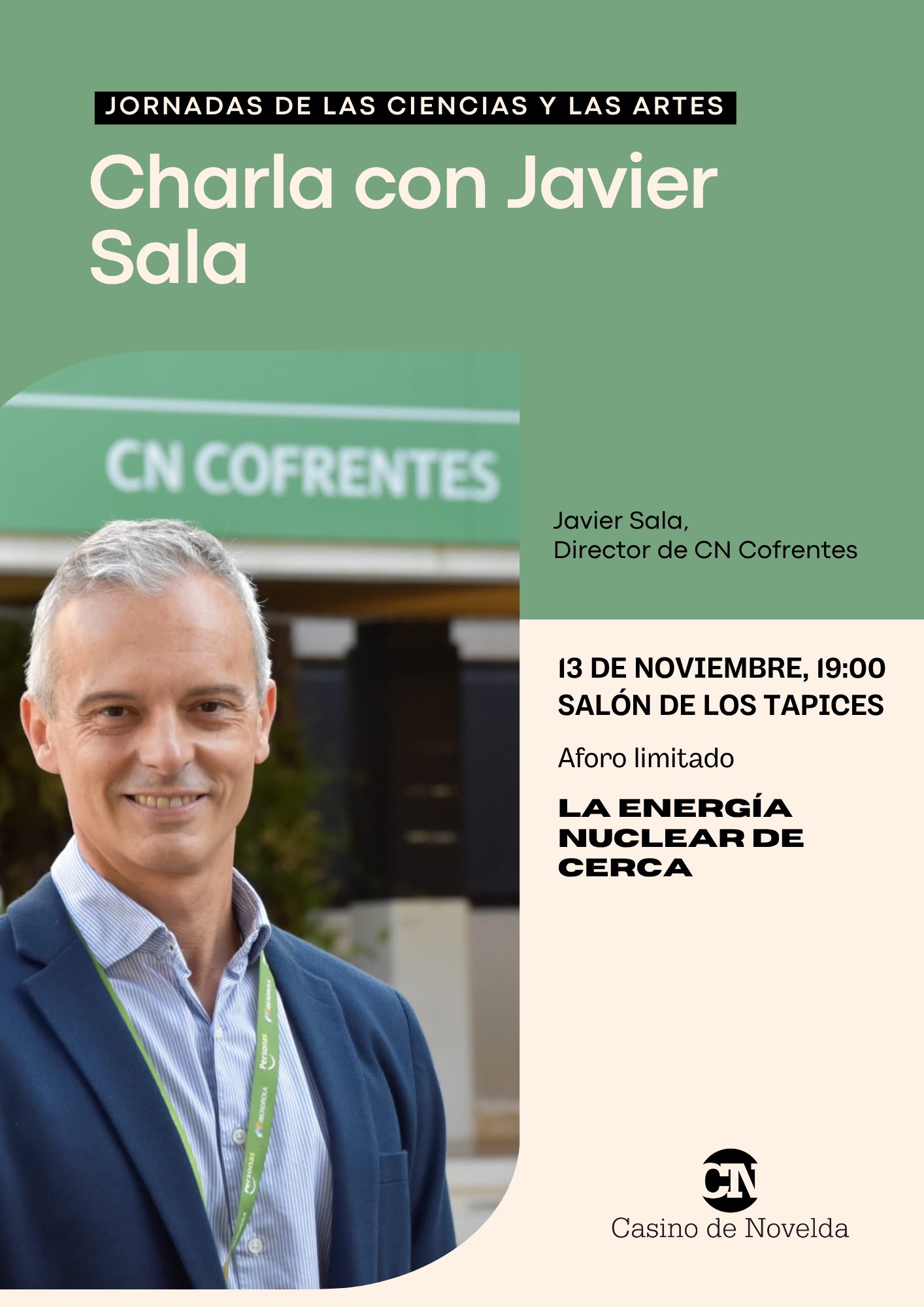 Javier Sala, Director de CN Cofrentes 13 DE NOVIEMBRE, 19:00 SALÓN DE LOS TAPICES Aforo limitado LA ENERGÍA NUCLEAR DE CERCA CN Casino de Novelda |