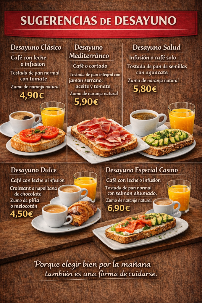 Desayunar es mucho más que comenzar el día: es concederse un instante propio antes de que el reloj marque el ritmo. En el Casino de Novelda, cada mañana se convierte en un pequeño ritual de calma, luz y sabor.